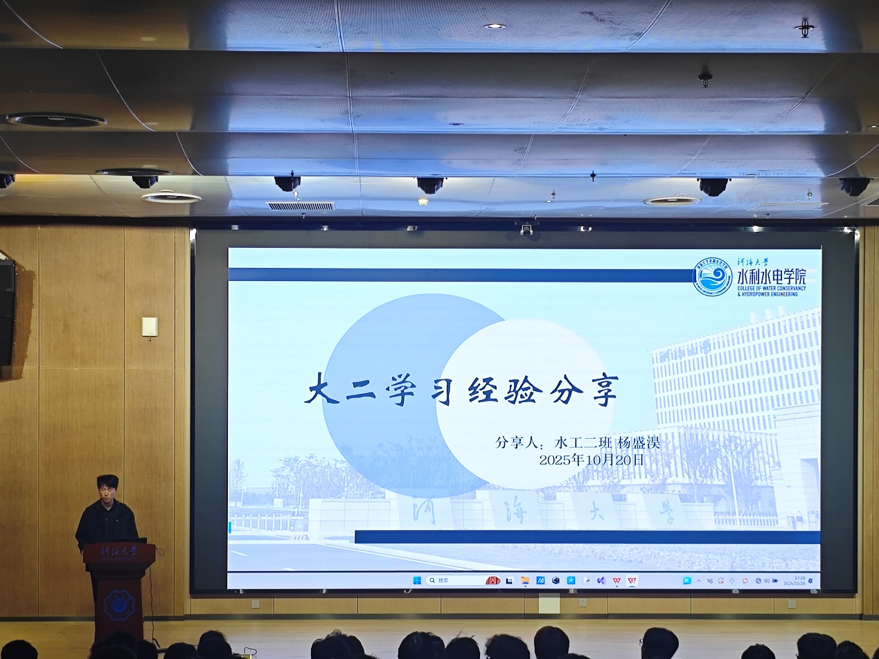 会上,2024级水工二班杨盛淏同学聚焦“大二关键期的学习节奏与方法”进行学习经验分享。他提醒大家关注理论力学、材料力学等核心课程的考试安排,强调重视平时分、坚持每日梳理与紧盯考点,并系统介绍了分阶段、抓重点的考前一周冲刺策略,为同学们提供了实用参考。