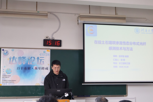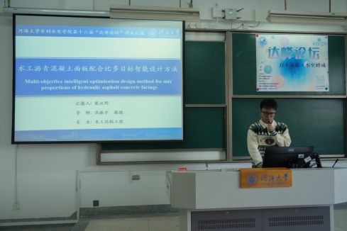 10月28日,河海大学第十四届“学海争锋”学术年会暨水利水电学院第十六届“达峰论坛”活动在西康路校区成功举办。本届论坛以“百十求索,水至峰成”为主题,设置水工结构工程会场、水力学与智水安工交叉会场、水利水电工程会场。活动邀请我院顾圣平、陈守伦、黄显峰、邵晨飞、朱延涛、徐津、刘琳等教师担任评委嘉宾,共有32名研究生出席论坛参与汇报,逾200名观众现场倾听。