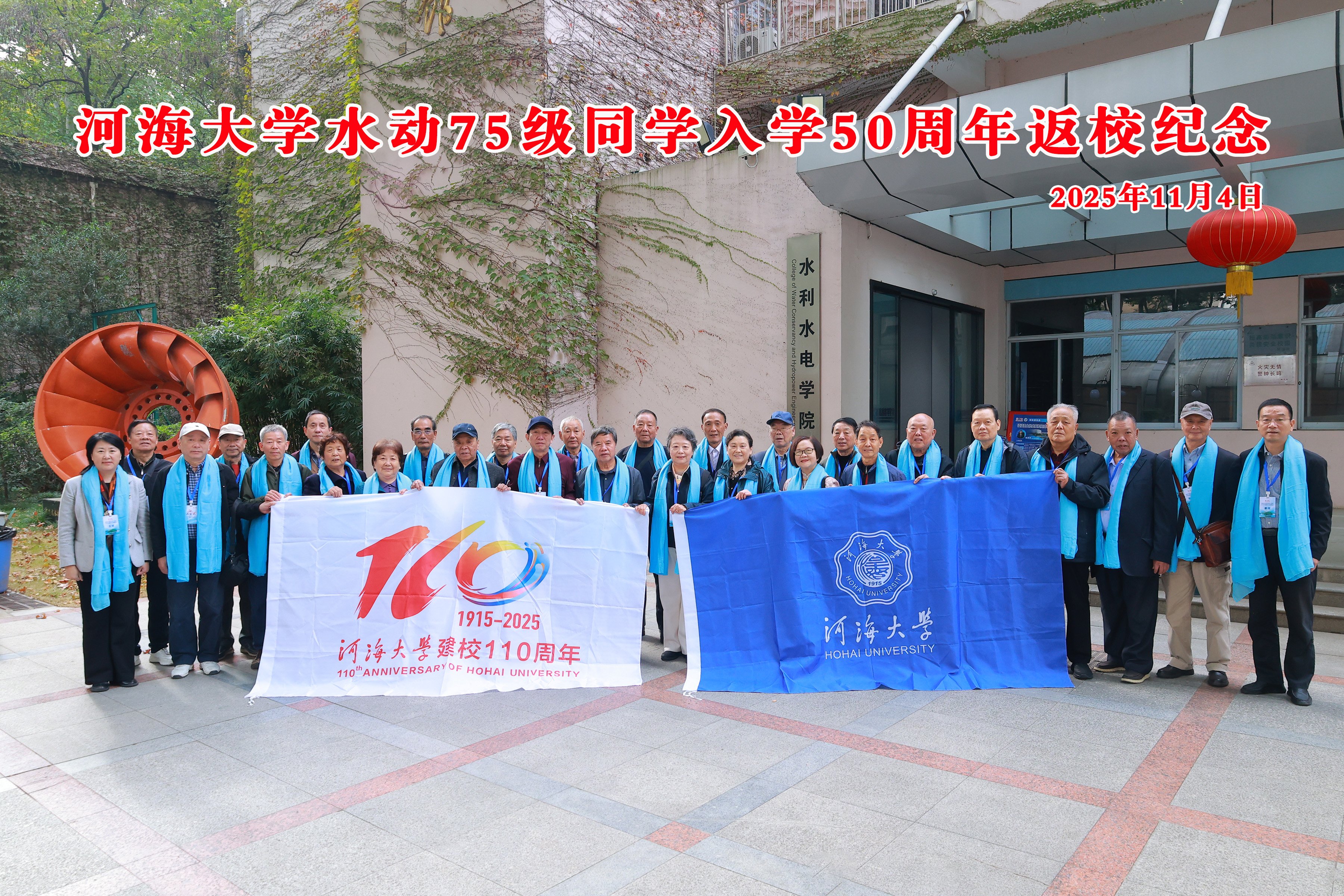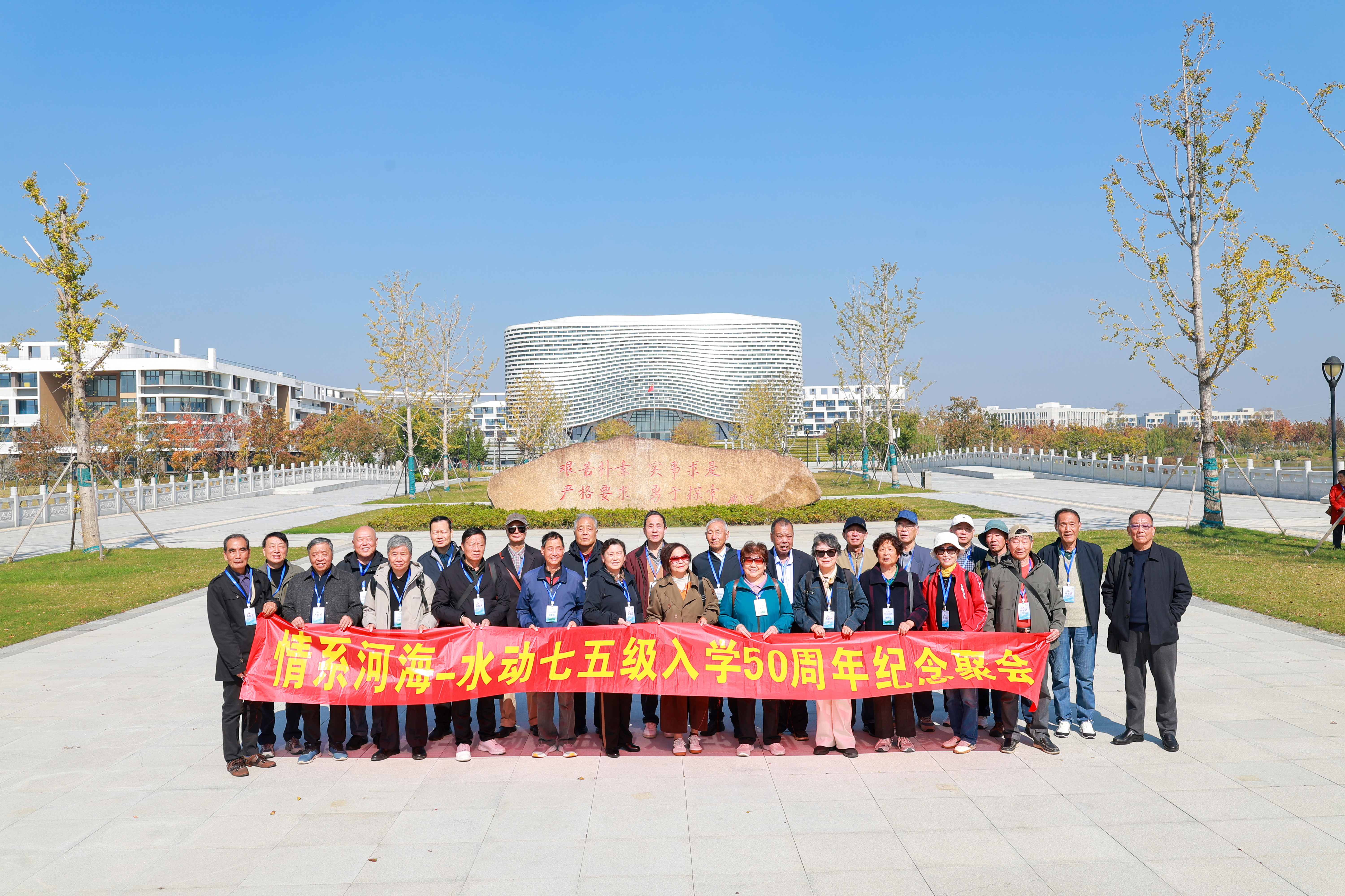 2025年,之于水动75级校友来说,是一个特别有讲究的年份。这一年是母校百十年华诞;也是水动75级入学50周年;还是水动75级全员跨进古稀之年的一年。他们商定,今年要回校,为母校110岁庆生,也为成为河海之子50年的自己庆生,还要为他们之中年龄最小的同学进入古稀之年庆生。母校是“吾乡”,是“心安”之处。离开母校47年,“出走半生,愿归来仍是那个少年。”