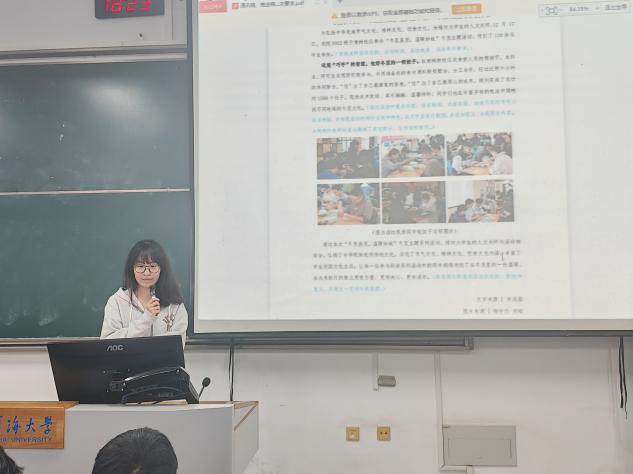 在重温红色记忆中砥砺初心使命,水电院学生会副主席李盈以《从张闻天精神看新时代青年的自我革命》为题作领学报告。她结合刚刚闭幕的纪念张闻天同志诞辰124周年学术研讨会精神,从“真理标准、人民立场、自我批评”三个维度,带领大家重温张闻天“真理在谁手里,就跟谁走”的崇高风范,并联系党的二十大报告提出的“六个必须坚持”,勉励全体学生会成员在学风督导、志愿服务、科研竞赛中自觉做“两个确立”的坚定拥护者、“两个维护”的示范引领者,让红色基因在水电青年中代代相传。