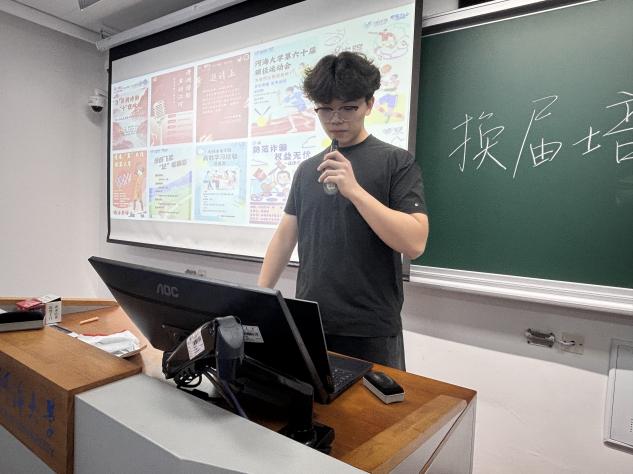 学生会体育部新任部长闫金铭将繁琐的通讯稿与策划案写作提炼为易懂易记的“三句半”口诀:“首句锁定时地人,次句提炼亮点与数据,末句升华主题展展望,半句点睛靠配图。” 他用新生杯足球赛策划案进行现场教学。他强调“少即是多”的稿件写作原则,并叮嘱大家“写完自读三十秒”,确保文通字顺、表意清晰,让文字真正为活动赋能。