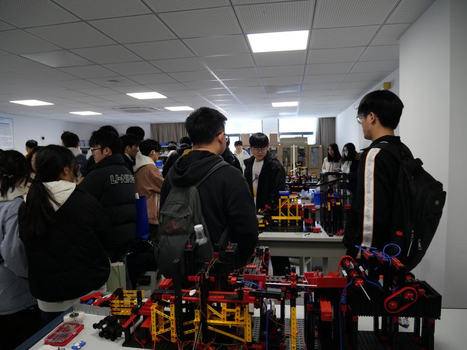 两校师生分批走进长荡湖校区E龙队机器人实验室、惠鱼实验室及图书馆,开启科技与水利融合的探索之旅。在E龙队机器人实验室,同学们近距离观摩水利智能监测机器人、工程运维自动化设备等科创成果,听取团队成员关于研发原理与应用场景的详细介绍,直观感受人工智能、大数据技术为水利行业注入的创新活力。在惠鱼实验室,大家围绕水生态保护、鱼类资源修复等研究方向与实验室师生深入交流,了解水利工程与生态保护协同发展的前沿技术。在图书馆,学子们沉浸于浓厚的学术氛围中,感受知识殿堂的独特魅力。此次探秘让大家深刻认识到“忠诚、干净、担当,科学、求实、创新”这一新时代水利精神的时代内涵,拓宽了学术视野与科创思路。