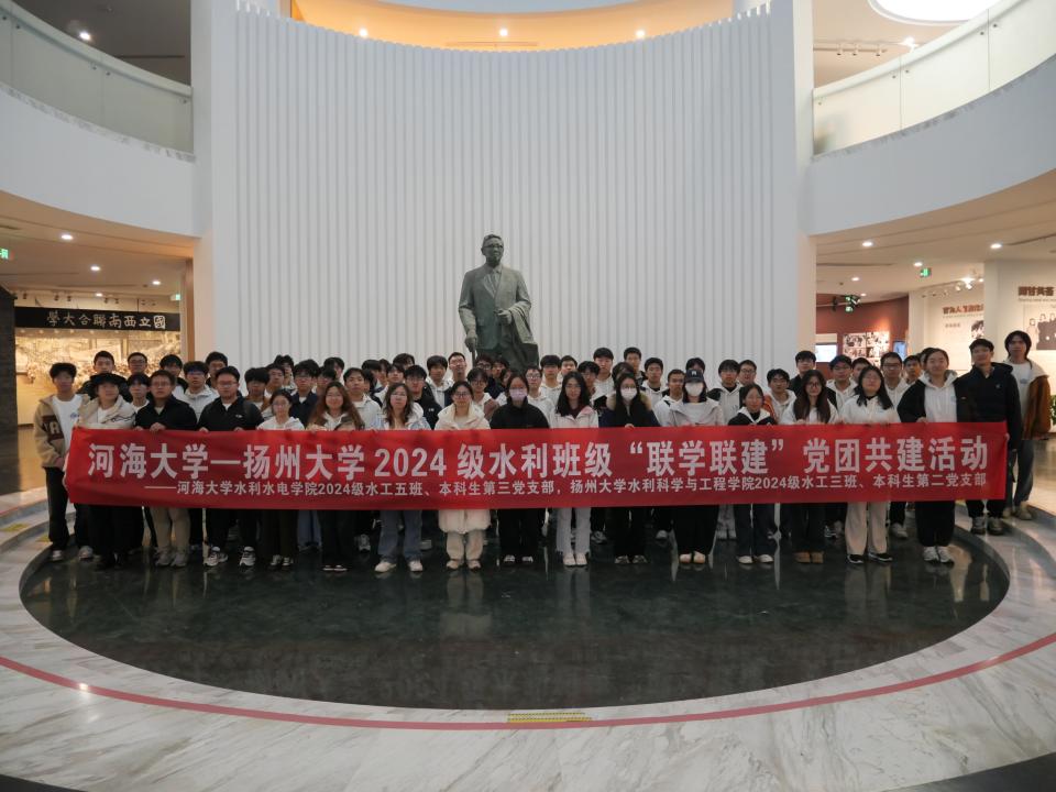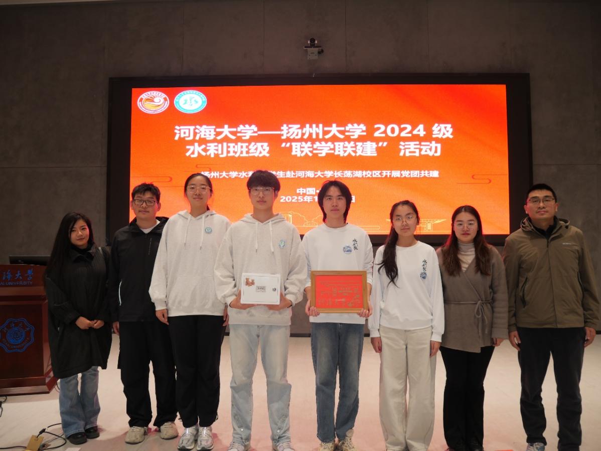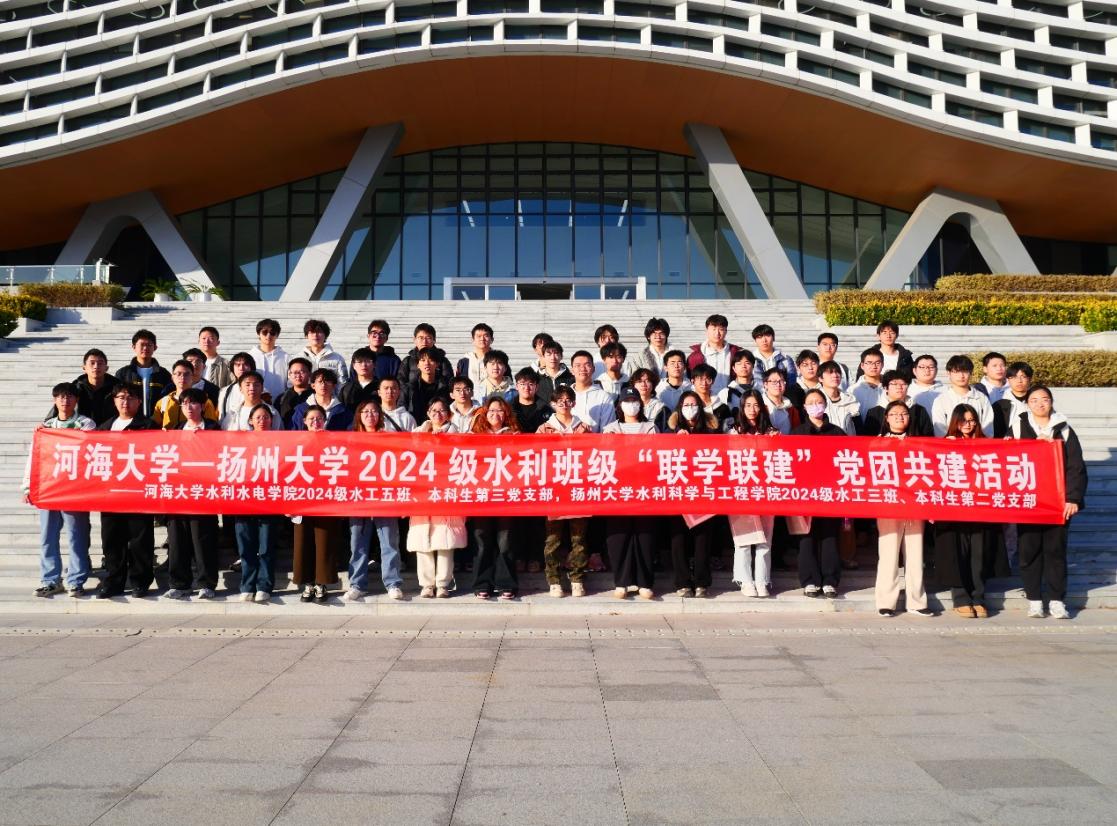 11月29日,河海大学水利水电学院2024级水工5班全体成员、本科生第三党支部党员与扬州大学水利科学与工程学院水工2403班全体同学、本科生第二党支部党员在长荡湖校区开展“联学联建”主题活动。扬州大学水利科学与工程学院青年教师、本科生第二党支部书记苏昆鹏,24级本科生辅导员杨蝉溪,河海大学水利水电学院水力学及河流研究所、24级水工5班班导师朱海,院团委书记、24级本科生辅导员、本科生第三党支部书记笪步源共同参与活动。双方师生通过座谈交流、知识竞技、实验探秘、红色研学等丰富形式,搭建起两校水利学子思想碰撞、经验互鉴的平台,让青年学子在互动中深化对水利使命的认知,携手绘就新时代水利青年的青春蓝图。