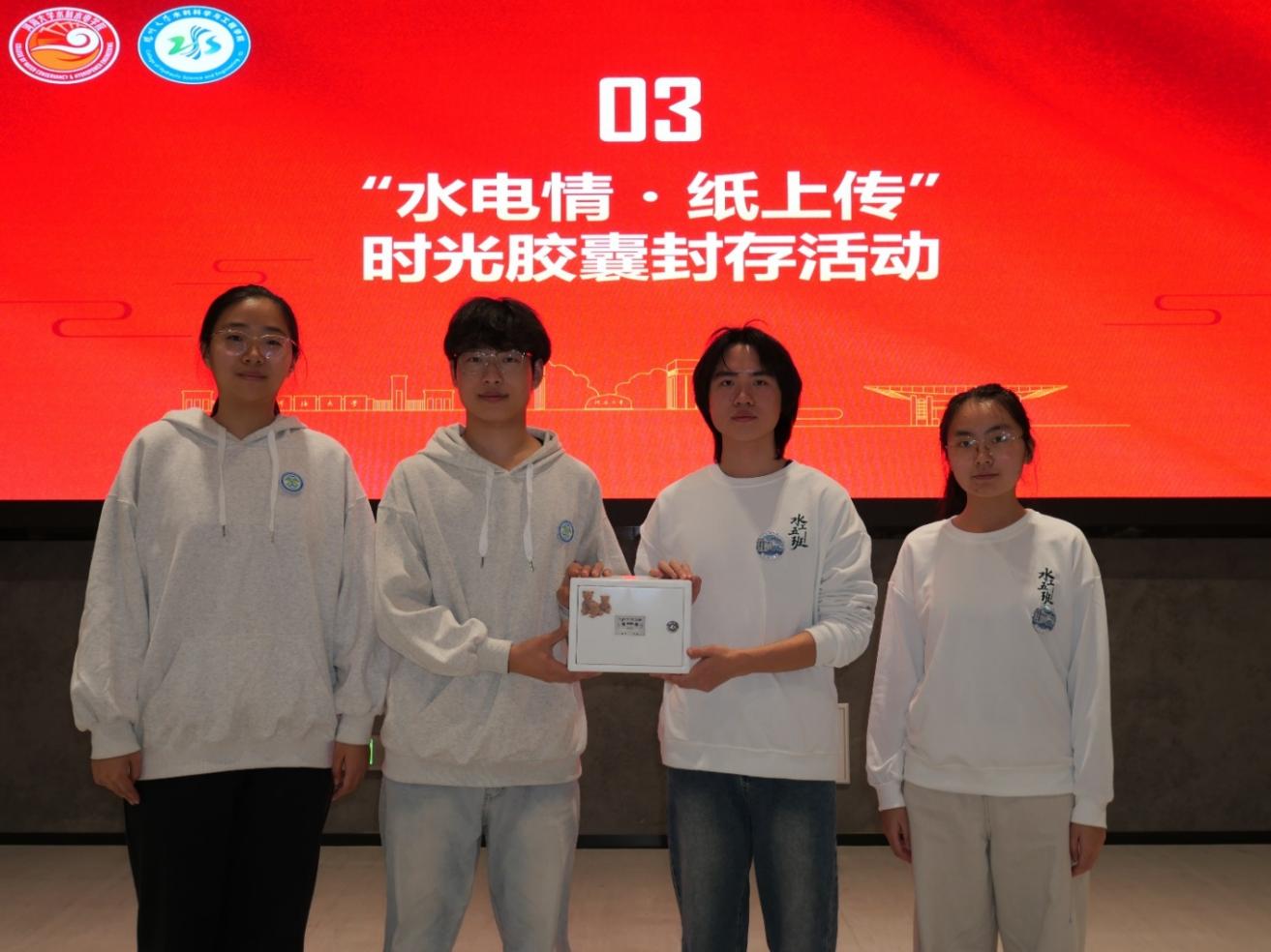活动现场还特别设置“水电情·纸上传”时光胶囊封存环节,同学们将饱含对水利事业憧憬、自我期许与行业责任担当的《致未来水电共建同行者的信》郑重放入“时光胶囊”,约定一年后启封,见证青春誓言与成长足迹。