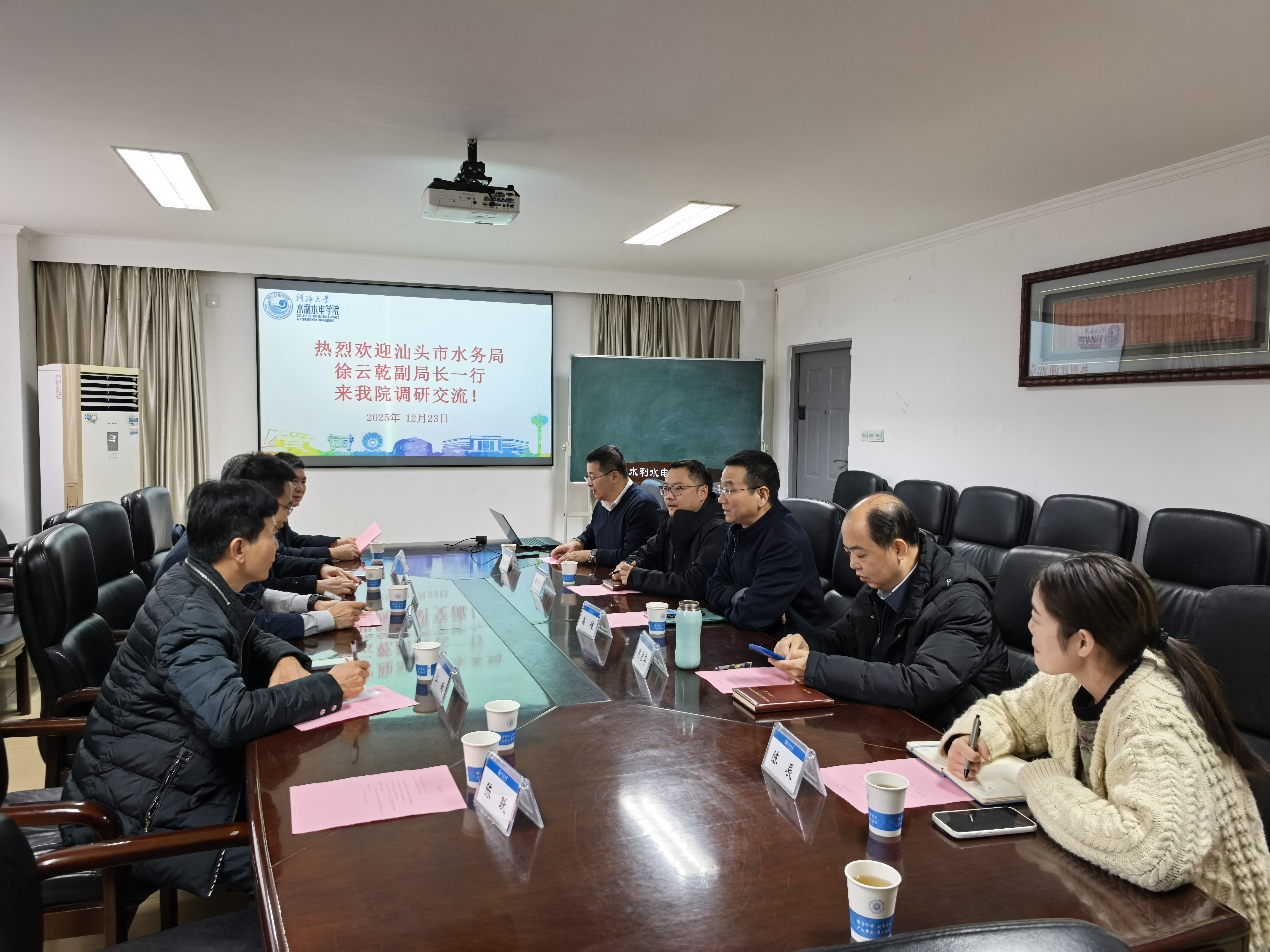 双方一致认为,河海大学水利水电学院的科研、人才优势与汕头市水务局的实践、平台需求高度互补,合作前景广阔。下一步,双方将建立常态化沟通机制,细化合作内容,共同推动合作协议的签订与落实,携手为区域水安全保障与高质量发展提供科技支撑与人才保障。(图、文/陈良蕾)