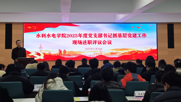 12月24日,我院举行2025年度党支部书记抓基层党建工作现场述职评议会议,学院党委书记娄健出席会议并作点评讲话,学院党委委员、全体师生党支部书记、部分支部委员及辅导员代表参加会议,会议由组织员柳璐主持。会上13个党支部书记分别就2025年度抓基层党建工作第一责任人履职尽责情况、存在的主要问题、原因分析以及下一步改进措施进行现场述职,与会人员对各党支部书记抓基层党建工作进行评议。