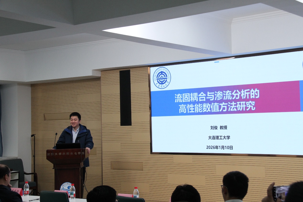 大连理工大学建设工程学院刘俊教授作题为《流固耦合与渗流分析的高性能数值方法研究》的报告,系统介绍面向复杂结构-流体-地基相互作用与工程渗流分析的高精度、高效率数值计算思路,为复杂工程问题的精细化模拟提供了新的技术路径。