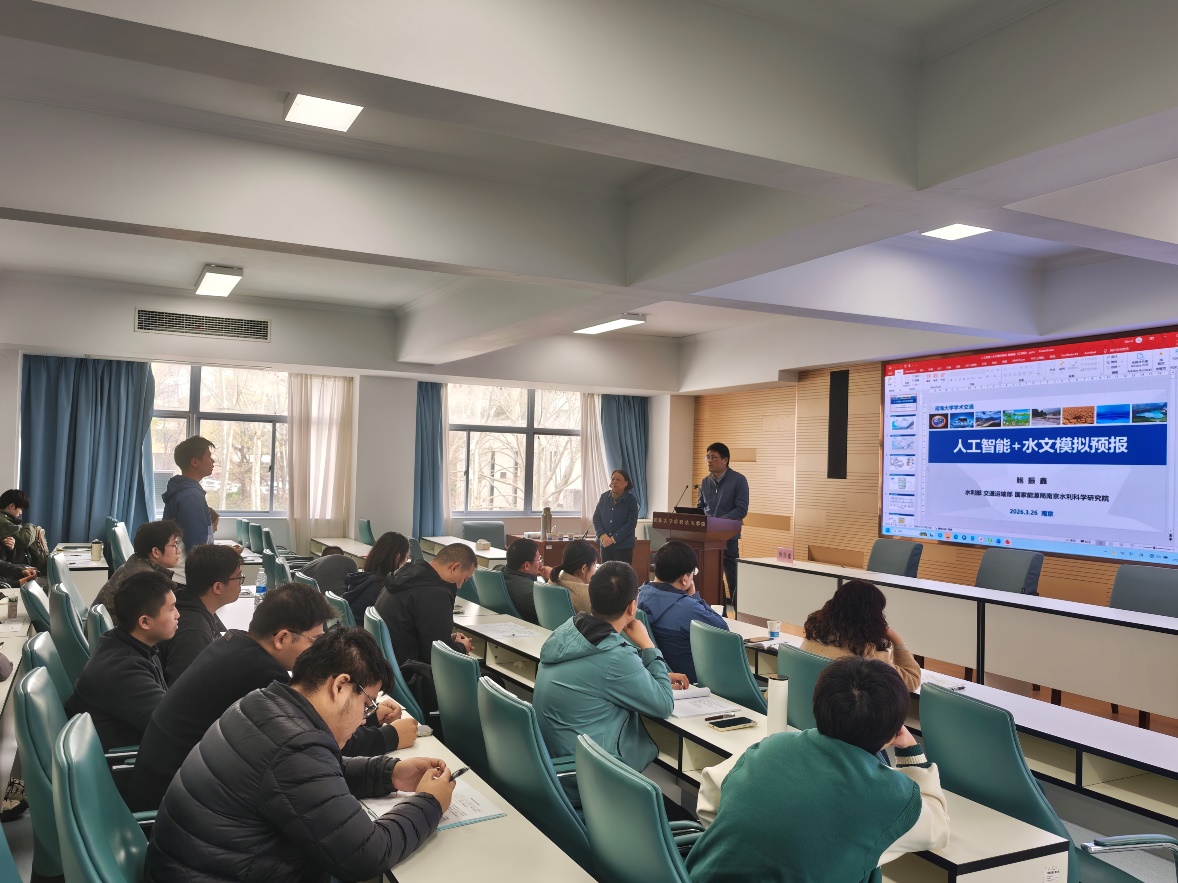 3月26日(周四)下午,水利水电学院在水电馆301会议室举办学术报告会,特邀国家“万人计划”科技创新领军人才、南京水利科学研究院水文水资源研究所总工程师鲍振鑫教授作题为“人工智能+水文模拟预报”的专题报告。报告会由方国华教授主持,学院相关方向教师和研究生共同参加。