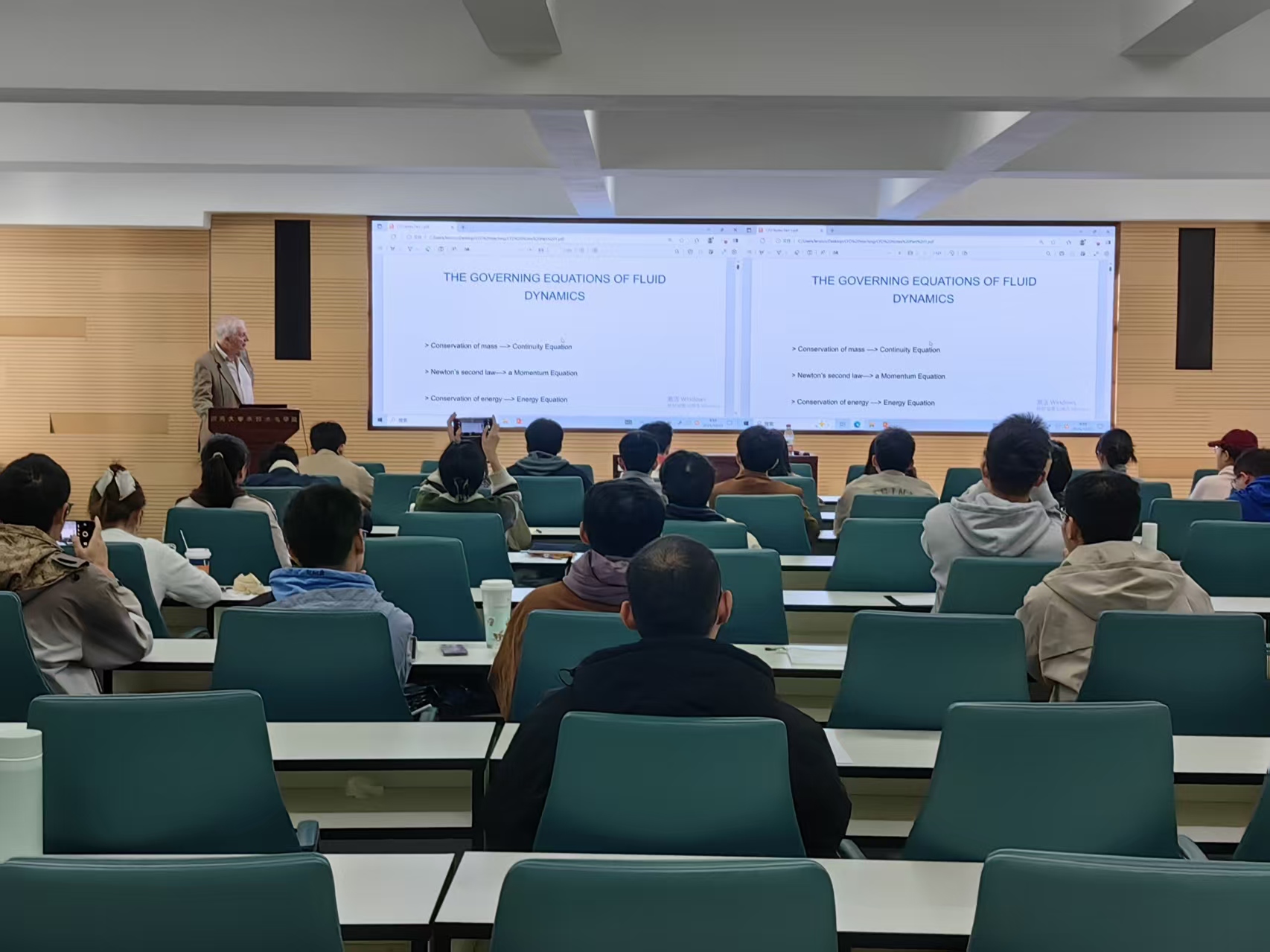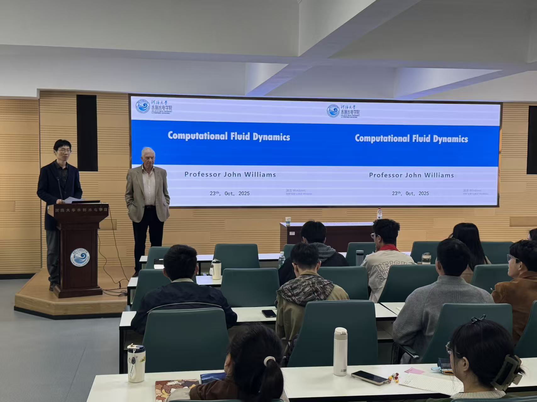 10月23日上午,英国伦敦大学玛丽皇后学院Williams教授应水利部水循环与水动力系统重点实验室邀请访问我院,开展系列学术交流。报告会由河海大学水利水电学院许栋教授主持,水利水电学院、港口海岸与近海工程学院、海洋学院、力学与材料学院相关老师和学生参加交流。Williams教授应邀做了题目为“Computational Fluid Dynamics: the Basics with Applications”的学术报告。报告会主要介绍了计算流体力学的基本原理,控制方程特征和数值求解方法,受到参会老师和同学的热烈欢迎。