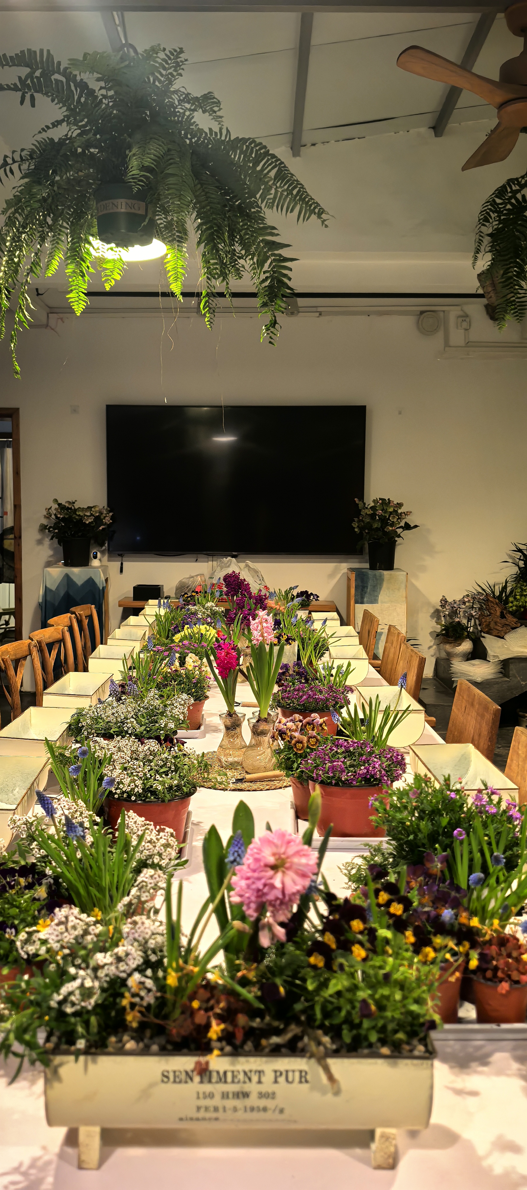 随后,大家移步至雅致的花艺空间,在专业老师的指导下开展创意花组盆栽活动。从挑选花材、搭配色彩到布局造型,女教职工们认真聆听讲解,亲手将风信子、雏菊等春日花卉与绿植巧妙组合,打造出一盆盆独具匠心的微型花园。指尖流转间,不仅完成了一件件充满生机的花艺作品,更在慢节奏的创作中舒缓了工作压力,收获了满满的成就感与幸福感。